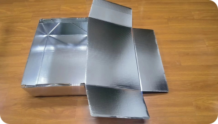 CoolBox are made from specialized corrugated board laminated with an impermeable reflective metallized polyester.